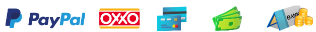 Aceptamos todas las formas de pago: Efectivo, cheque, tarjetas bancarias, Oxxo, PayPal, transferencia, Depósito, American Express y Mercado Pago